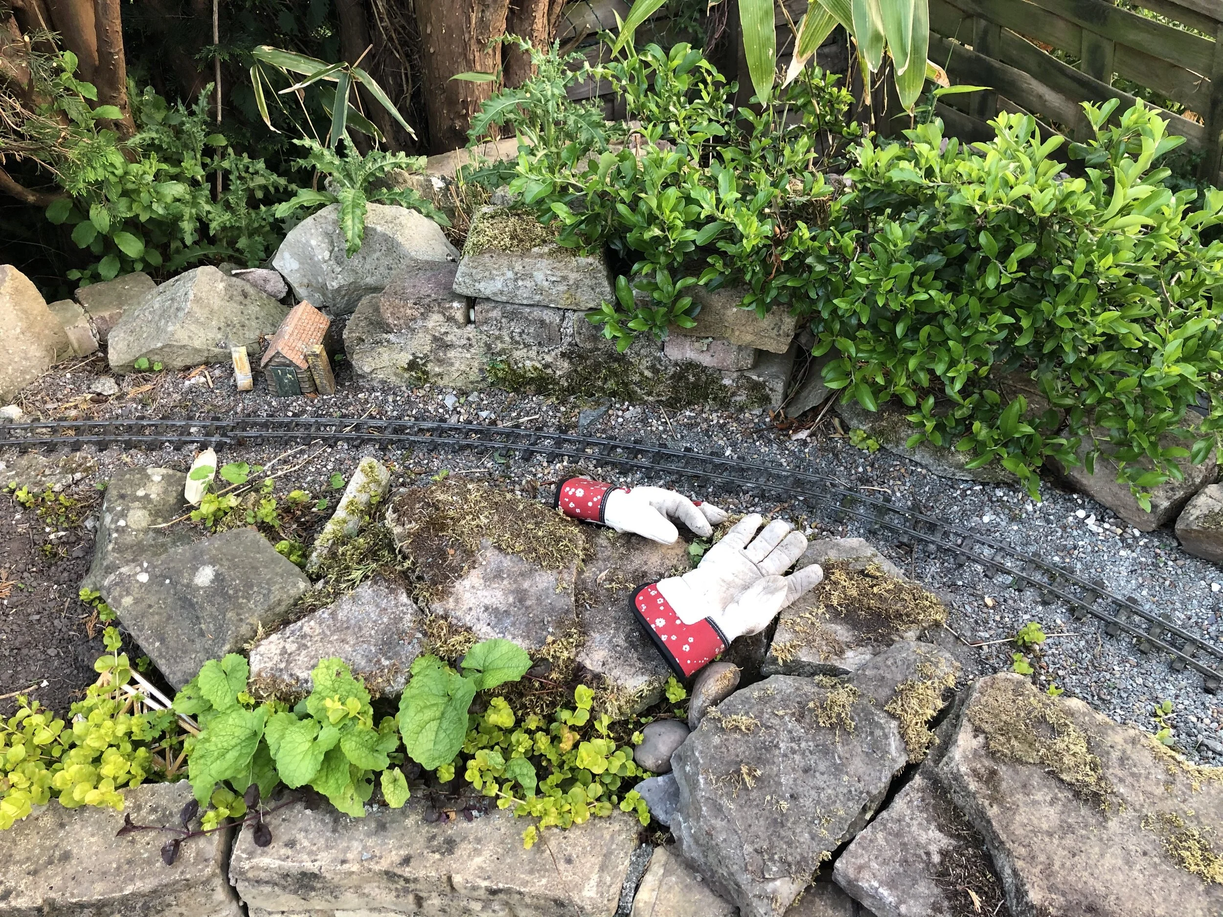 Suffice to say the poor railway hasn’t been a priority over the last 18 months. Still, it’s sunny now and I’m gradually getting back into treating the track with the love it deserves. The housemate and I have taken the whole track up this summer, with the goal of relaying it in a form that works for us and is easier to maintain. Turns out the little shoes that link sections of track together are called fishplates, just like they are in full scale railways!